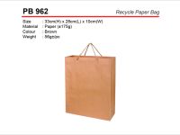Recycle Paper Bag Model: PB 962 Size: 33(H) x 28(L) x 10(W)cm Material: Paper (175g) Weight: 56g Colour: Brown |
