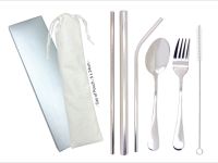 Stainless Steel Straw, Fork & Spoon Set with Pouch