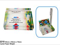 Crystal Paper Weight with Name Card Holder * with 2D inner laser engraving in the crystal. Model: 9049 Size: 45 x 85 x 85mm |